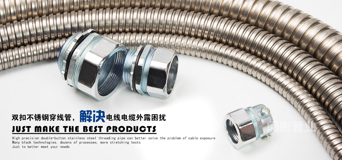 除此之外,公司還致力于金屬軟管接頭,普利卡管,普利卡接頭,不銹鋼穿線管的銷售。公司本著品種多、質(zhì)量優(yōu)、服務(wù)好的宗旨,不斷開發(fā)、創(chuàng)新產(chǎn)品,以滿足日益發(fā)展的市場需要。產(chǎn)品主要包括:金屬軟管接頭 ,橋架接頭,塑料軟管接頭,AD接頭,不銹鋼接頭,普利卡接頭,包塑金屬軟管,不銹鋼軟管,不銹鋼波紋管,不銹鋼編織軟管,普利卡軟管,尼龍軟管,塑料波紋管,尼龍拖鏈等機(jī)床配件。產(chǎn)品廣泛應(yīng)用于建筑、機(jī)床、鐵路、車輛、化工、汽車、監(jiān)控、建筑裝修、建筑裝飾、建材、裝修裝飾等行業(yè)。上海閔彬管業(yè)有限公司高質(zhì)量包塑管在實(shí)際使用中多家工程單位的認(rèn)可、使用與推廣。